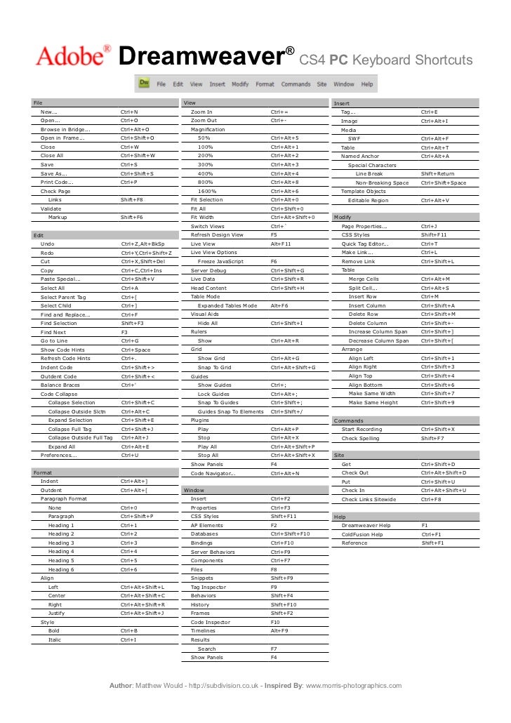 Adobe Dreamweaver Cs4 Keyboard Shortcuts Keys Code Graphic Design Blog