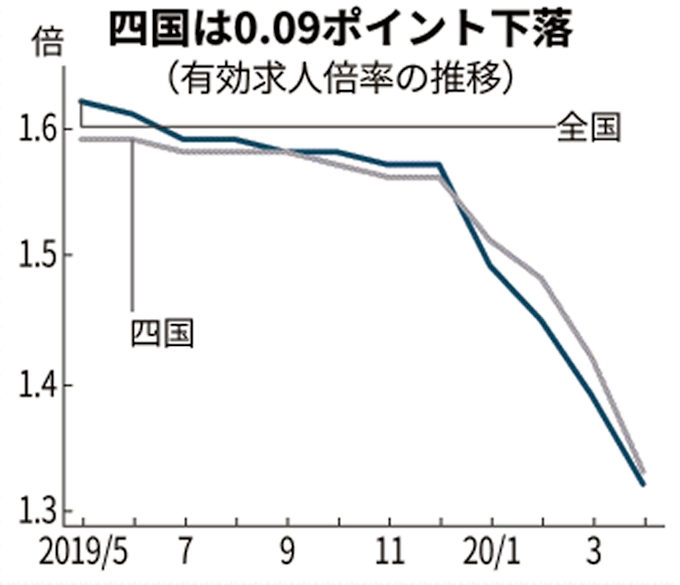 四国4県の求人倍率1 33倍に低下 4月 2県が下方修正 日本経済新聞
