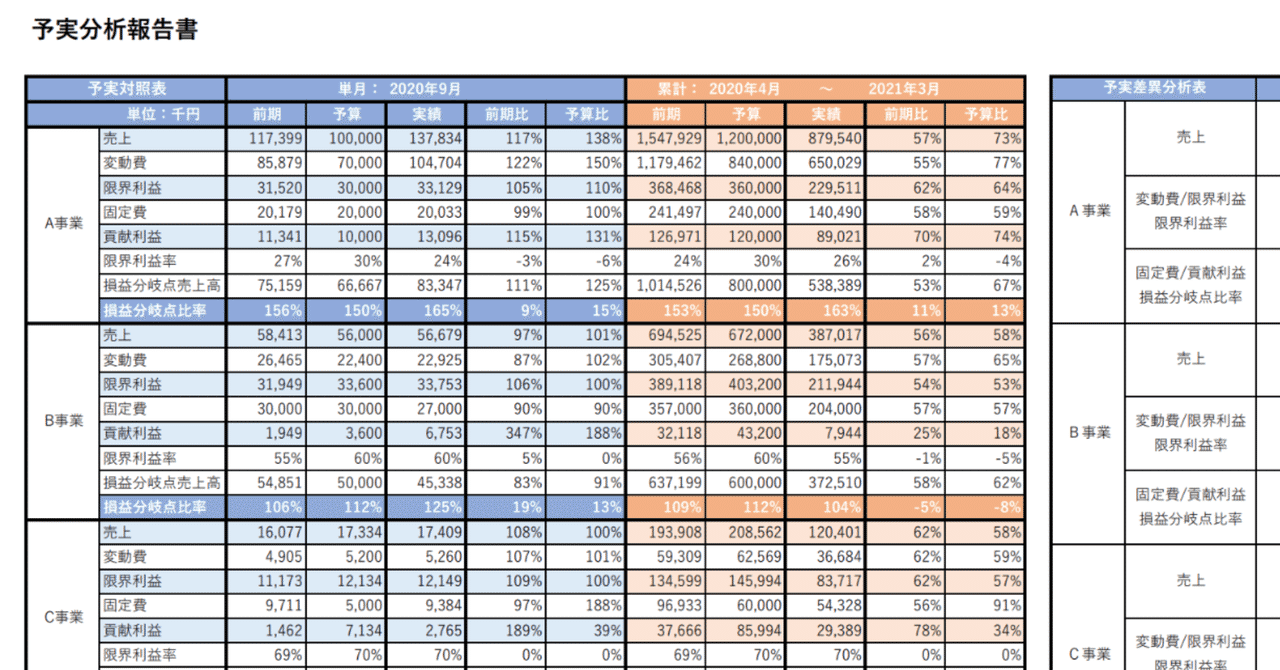 予算実績差異分析 のフォーマットと予実管理のポイント 社長の知恵袋 いい会社経営のヒント
