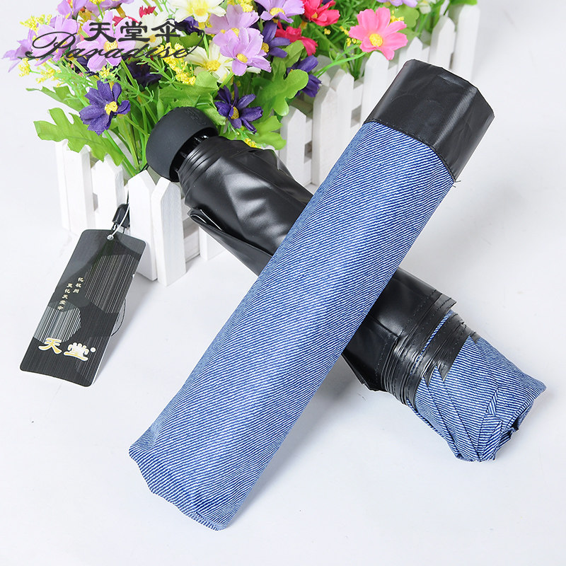 天堂傘小清新摺疊男士三折純色黑膠防曬晴雨傘定製廣告傘印刷logo